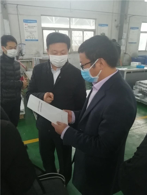 松江區(qū)政府及永豐街道相關領導一行聽取了公司復工復產情況匯報,在得知上海錦鋁每天復工開機率穩(wěn)定提升的情況時,領導要求企業(yè)務必要保持高度警惕,注意防范,不能有絲毫懈怠,把防控落實到公司有序復工的每一個環(huán)節(jié),為奮力奪取疫情防控與高質量發(fā)展提供有力保障,從而貫徹習近平總書記的重要講話精神,加快推進疫情防控和經濟社會發(fā)展工作。