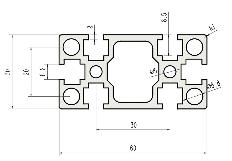 JL-6-3060G,6mm 槽寬工業(yè)鋁型材系列