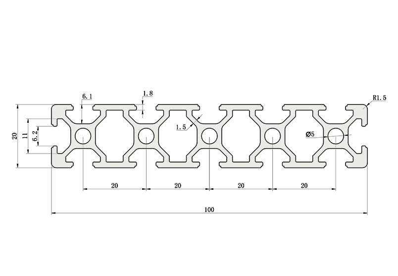 外形采用圓角過渡,表面經(jīng)過陽極氧化處理,高雅美觀并抗腐蝕,通常采用M6X20高強度專業(yè)螺栓加彈性扣件的內(nèi)部連接方式,是工業(yè)鋁型材框架應(yīng)用較為廣泛的型材之一。