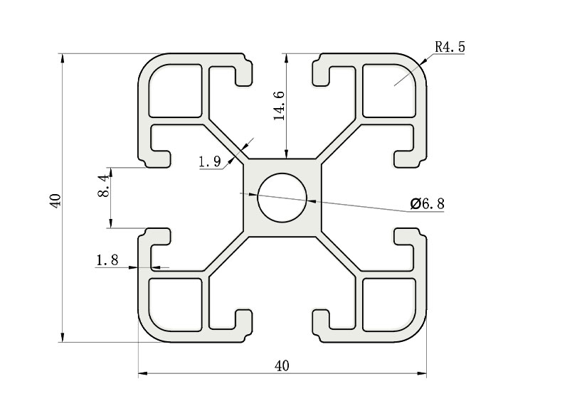 適用于應(yīng)力及強(qiáng)度較大的框架組合結(jié)構(gòu),它的外型采用圓角過(guò)渡,表面經(jīng)過(guò)陽(yáng)極氧化處理,高雅美觀并抗腐蝕,它通常采用M8X20高強(qiáng)度專(zhuān)用螺栓加彈性扣件的內(nèi)部連接方式,堅(jiān)固而又可靠,是工業(yè)框架應(yīng)用較為廣泛的型材之一。