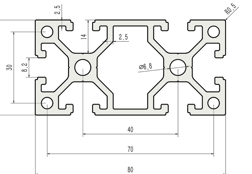 適用于應(yīng)力及強(qiáng)度較大的框架組合結(jié)構(gòu),它的外型采用圓角過(guò)渡,表面經(jīng)過(guò)陽(yáng)極氧化處理,高雅美觀并抗腐蝕,它通常采用M8X20高強(qiáng)度專用螺栓加彈性扣件的內(nèi)部連接方式,堅(jiān)固而又可靠,是工業(yè)框架應(yīng)用較為廣泛的型材之一。