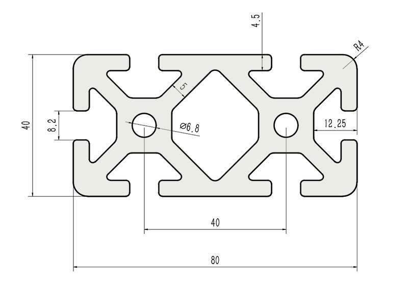 適用于應(yīng)力及強度較大的框架組合結(jié)構(gòu),它的外型采用圓角過渡,表面經(jīng)過陽極氧化處理,高雅美觀并抗腐蝕,它通常采用M8X20高強度專用螺栓加彈性扣件的內(nèi)部連接方式,堅固而又可靠,是工業(yè)框架應(yīng)用較為廣泛的型材之一。