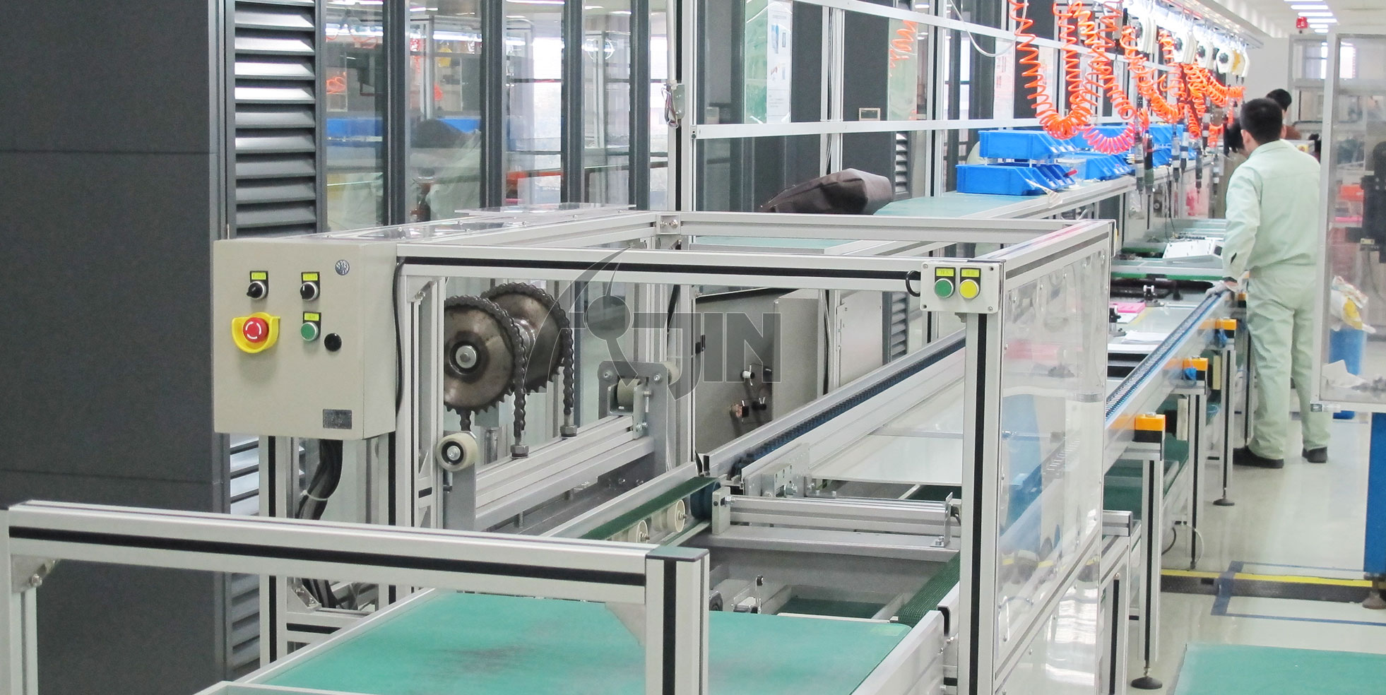 生產(chǎn)流水線是在一定的線路上連續(xù)輸送貨物搬運(yùn)機(jī)械,又稱輸送線或者輸送機(jī)。按照輸送系列產(chǎn)品大體可以分為:皮帶流水線、板鏈線、倍數(shù)鏈線、插件線、網(wǎng)帶線、懸掛線及滾筒流水線這七類(lèi)流水線。一般包括牽引件、承載構(gòu)件、驅(qū)動(dòng)裝置、張緊裝置、改向裝置和支承件等。流水線輸送能力大,運(yùn)距長(zhǎng),還可在輸送過(guò)程中同時(shí)完成若干工藝操作,所以應(yīng)用十分廣泛,使用我公司生產(chǎn)的各種生產(chǎn)流水線可以為客戶大幅節(jié)約人工、提升效率!